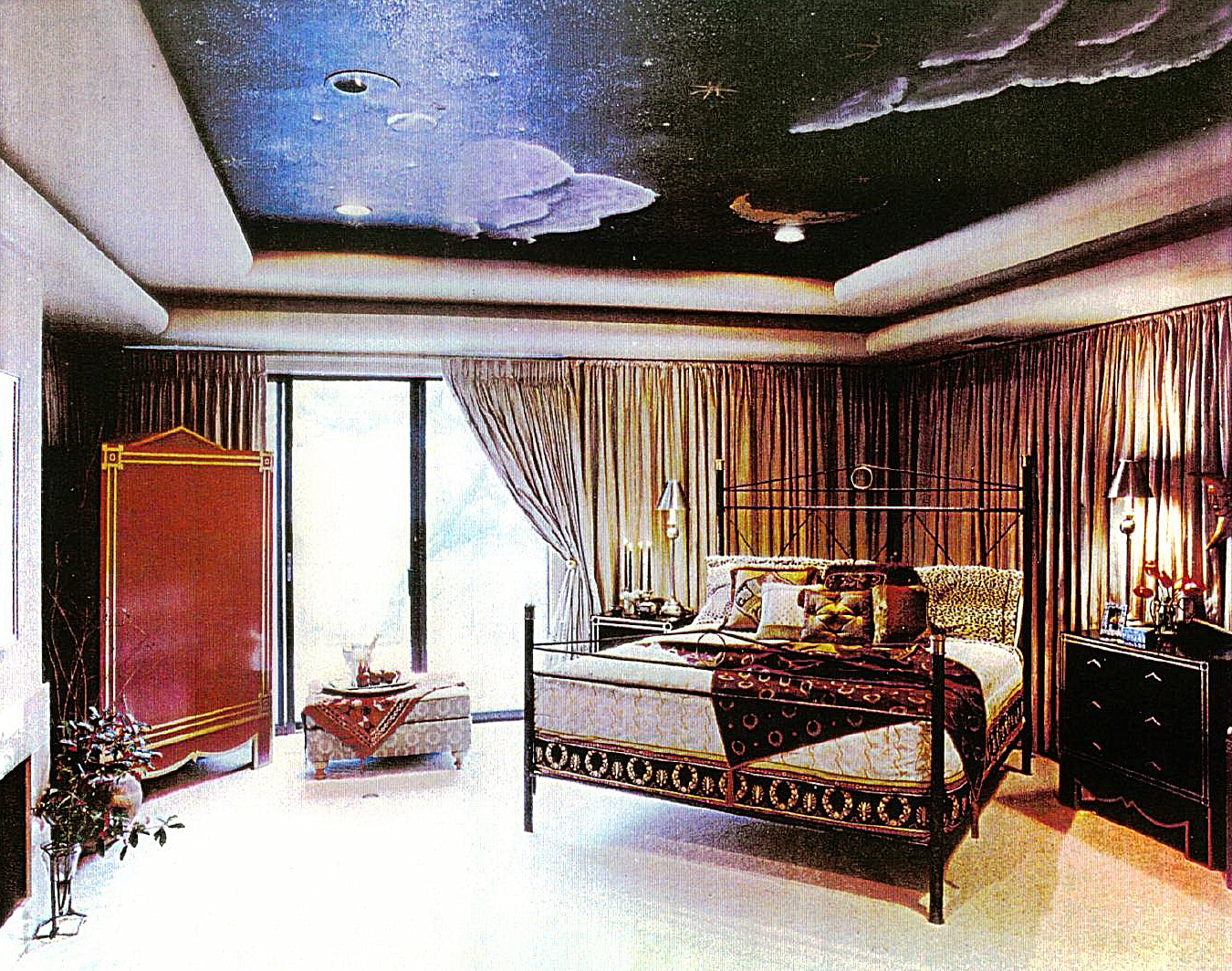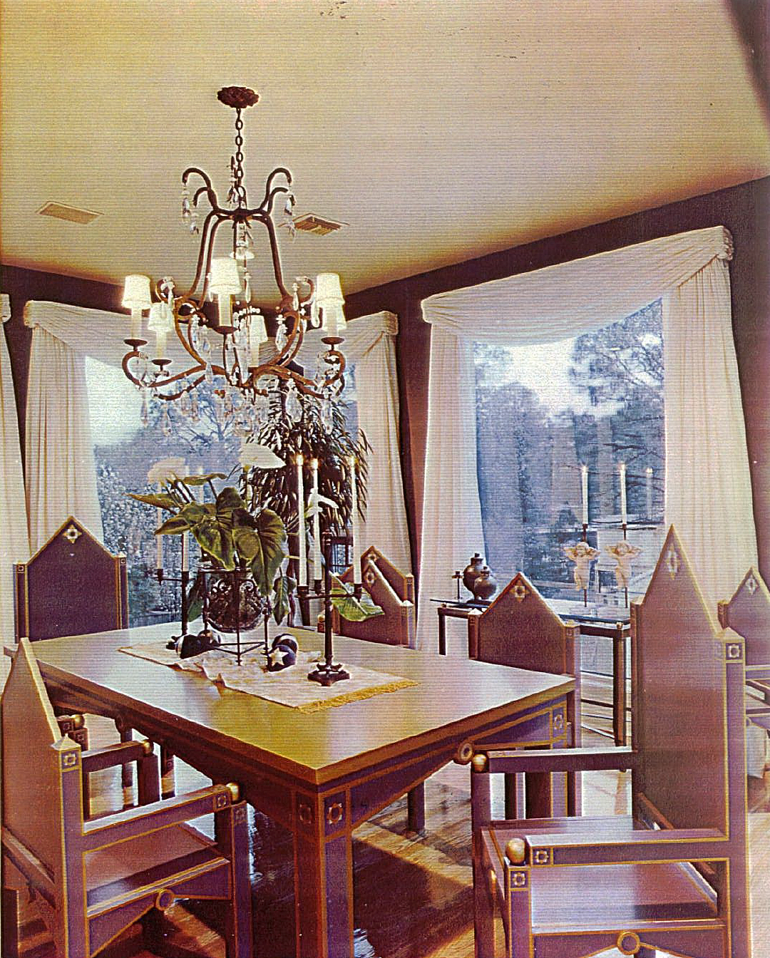 | Color & Light A DREAM HOUSE IN LAKE VISTA COMES TO LIFE The house is simply a showcase,. Designed by architect George D. Hopkins, Jr., with the interiors created by Emily Adams, John's house is dramatic and fascinating. I haven't known Emily Adams, the interior designer for the Barrett house, as long as I've known George, but we have been friends for several years. When she began talking about designing furniture i had no idea that the result would be a 14-piece collection that has everything from throne-like chairs to armories. Here's a designer who has put her heart and soul into making her dream a reality. John's house is truly a showcase for her work. ... While the structure and grounds are text book perfect, the interior has the appeal of a wonderful combination of elegance and playfulness. Interior designer Emily Adams used a bold palette of rouge and purple in the main entertaining areas. "I visualized the house as a neoclassical contemporary villa," she says. "Simple. Elegant. I wanted to use strong colors to absorb the light and give the rooms warmth." The rouge-colored walls in the living room are highlighted with a band of 22-carat gold-leaf molding around the entire room. Sconces, also finished in gold leaf, are incorporated into the molding and softly light the room, providing a dramatic nighttime scene. A grand piano occupies a place of honor in one corner of the room that features two seating areas defined by contemporary rugs. Furniture from the Collection Paradis, which Emily designed, is showcased in the living room. Each piece provides a dramatic statement and blends perfectly with the overstuffed couch, chairs and chaise longue she designed. The six picture windows in the living room are all the "art" the room needs. "We only have one piece of art in the room," Emily says. "It's the dramatic painting by local artist/architect Tore Wallen that hangs over the fireplace." The dramatic dining room is painted a regal purple color and all of the furniture in the room was designed by Emily. "The chairs are neoclassic triangular shapes that have a somewhat ecclesiastical flavor," she says. "The chairs and table are finished in purple and trimmed with 22-carat; top of the table is also gold, but don't worry, it has been carefully polyurethaned for protection." The same "coronation" purple is used on the walls of the three-level stairwell. However, when you reach the master bedroom the mood changes completely. "It becomes sort of an Arabian Nights tent," Emily explains. "I covered the walls of the entire room with a rich natural-colored silk fabric and then had Marco St. John paint the recessed ceiling to depict a nighttime sky illuminated by the moon." A Mario Villa bed dressed in a grand rich fabric further enhances the romantic setting. Emily's designs are showcased with the chests on either side of the bed and a rouge-colored armoire beside the fireplace. She created a dramatic vignette in one corner of the room by placing an overstuffed love seat in front of a mirrored screen that she designed. The coffee table, end tables and side chest are also from her 14-piece furniture collection. "Emily turned the bedroom into one of the most exciting spaces in the house," John explains. "It is cozy and wonderful." Emily sums up her visualization of John's house in dramatic terms: "I think of the house as a beautiful barge floating on Lake Pontchartrain." HOME SMART April 1994 By Bonnie Warren Photos By David Richmond |